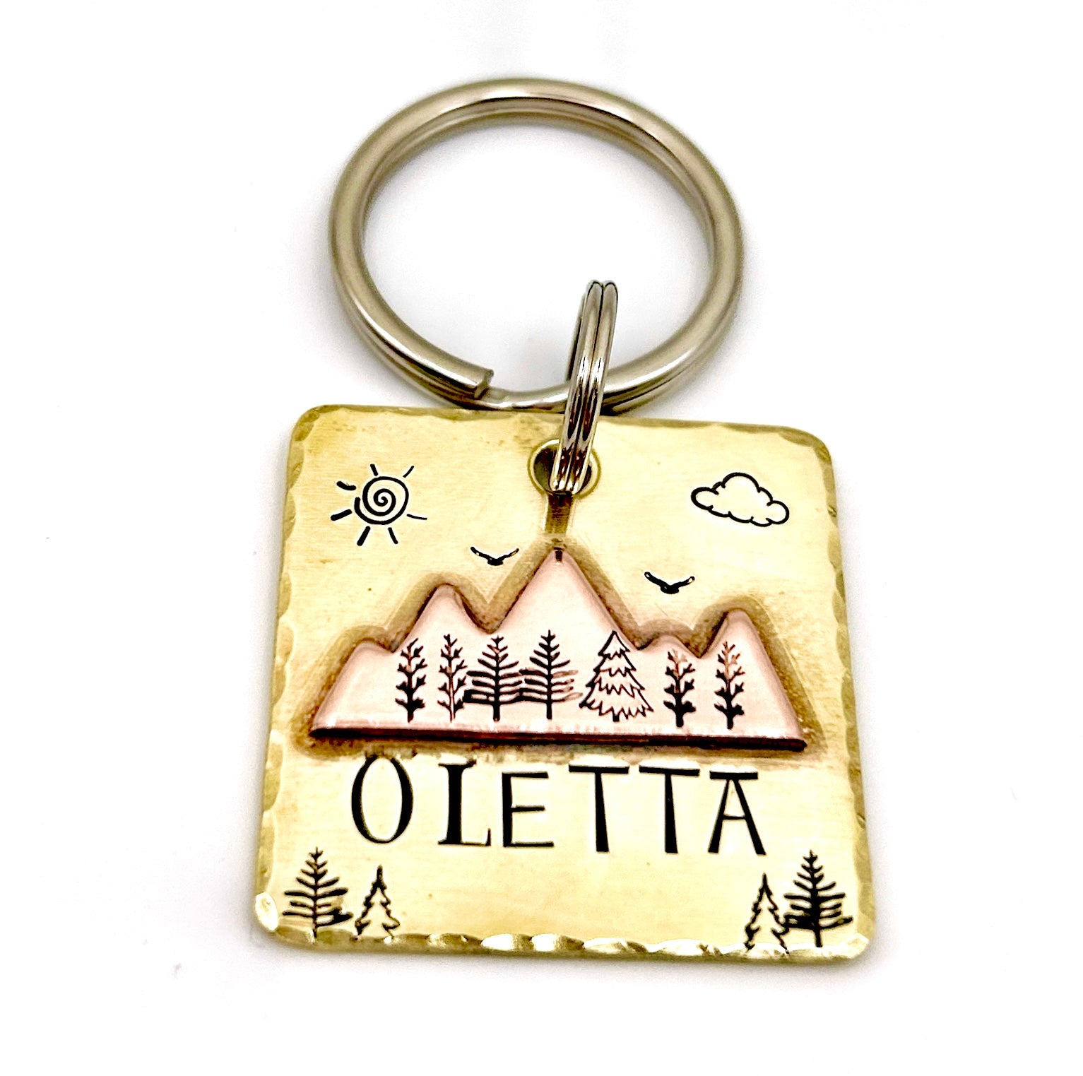 Médaille Identité Chien en Laiton avec Paysage de Montagnes – Gravure Personnalisée – Accessoire Unique pour Chien