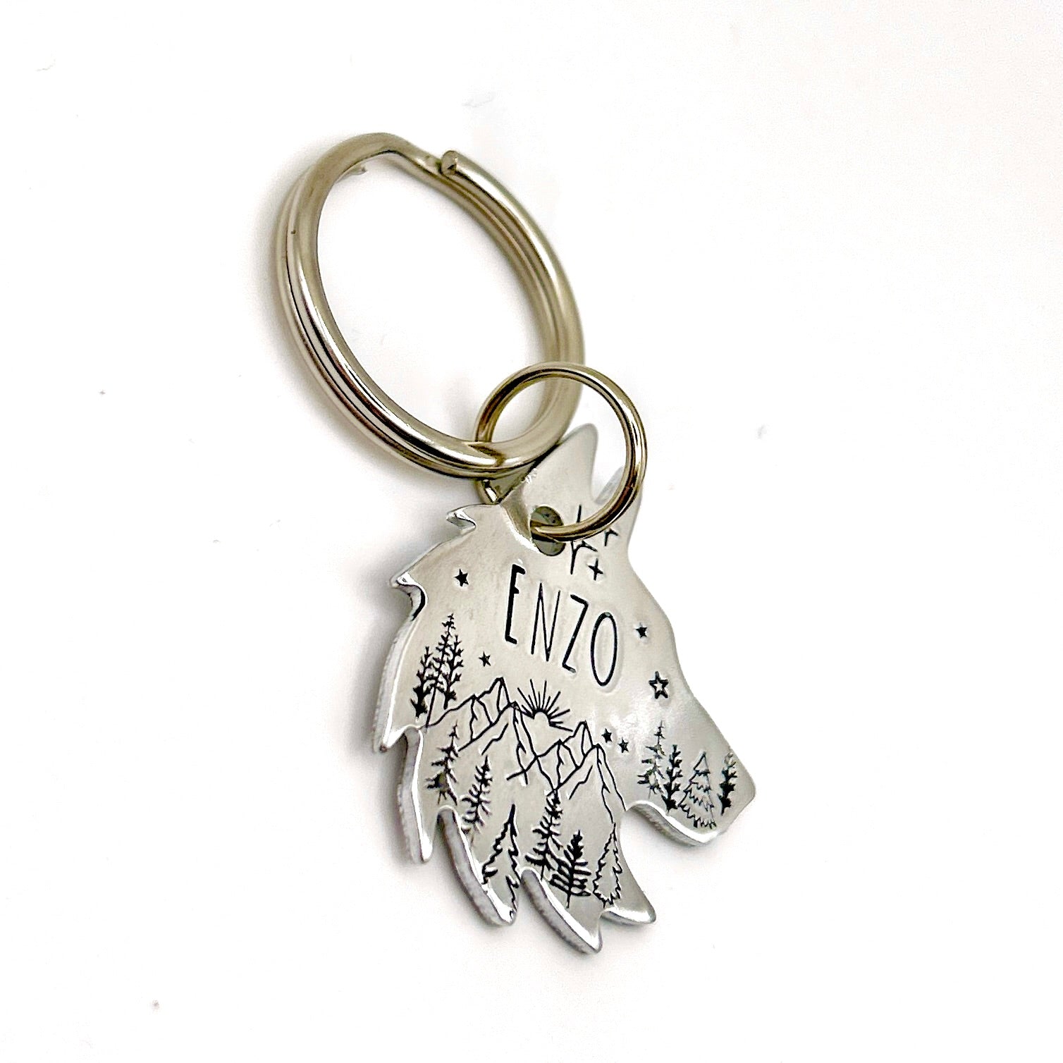 Médaille Personnalisée Husky - Plaque Chien Gravée avec Arbres et Montagnes